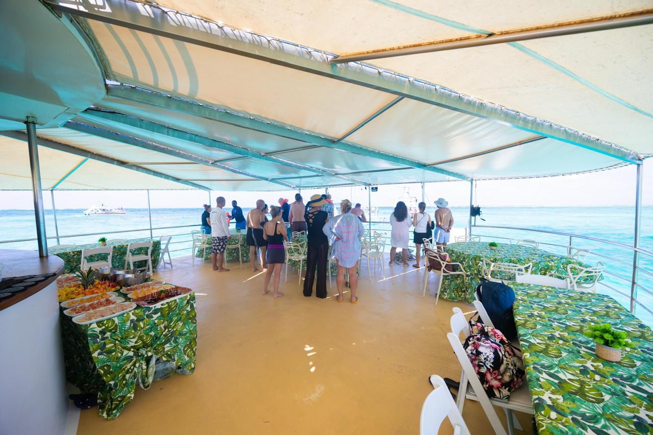 Set sail and enjoy full boat access with a captain, guide, and dedicated waiter for a full-service ocean party. Enjoy your own music, 45 minutes of snorkeling or relaxation, and panoramic views of the Dolphin Aquarium. Dive into a beautiful natural pool to swim, play, and sip your favorite drinks. Includes life jackets and round-trip transportation. Note that Water slides are not available due to shallow water.